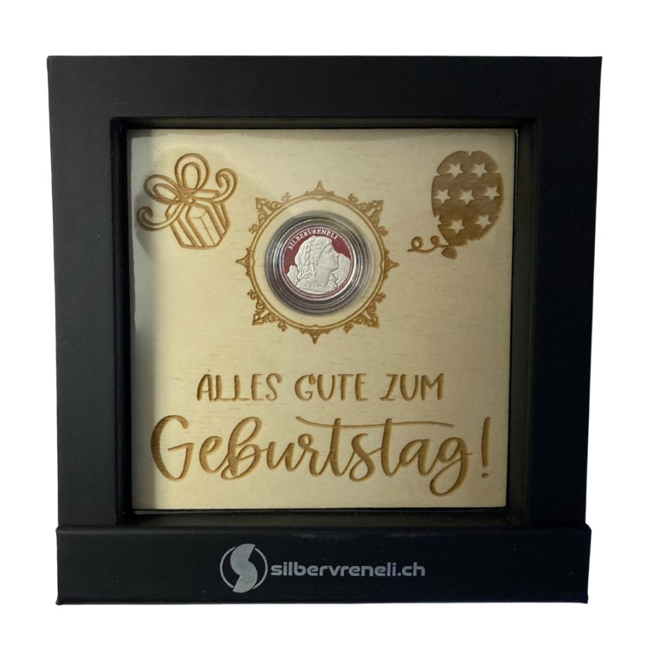 Dieser schwebende Rahmen mit den Wörtern "Alles Gute zum Geburtstag" wiegt 195 Gramm und hat eine Breite von 13 Zentimetern, eine Höhe von 13,4 Zentimetern und eine Tiefe von 3,4 Zentimetern. Der Rahmen wird ohne die Silbervreneli Münze geliefert; das abgebildete Bild dient nur zur Ansicht. Die Produktnummer für das Produkt "Schwebender Rahmen - Geburtstag" lautet S-10035-15154.